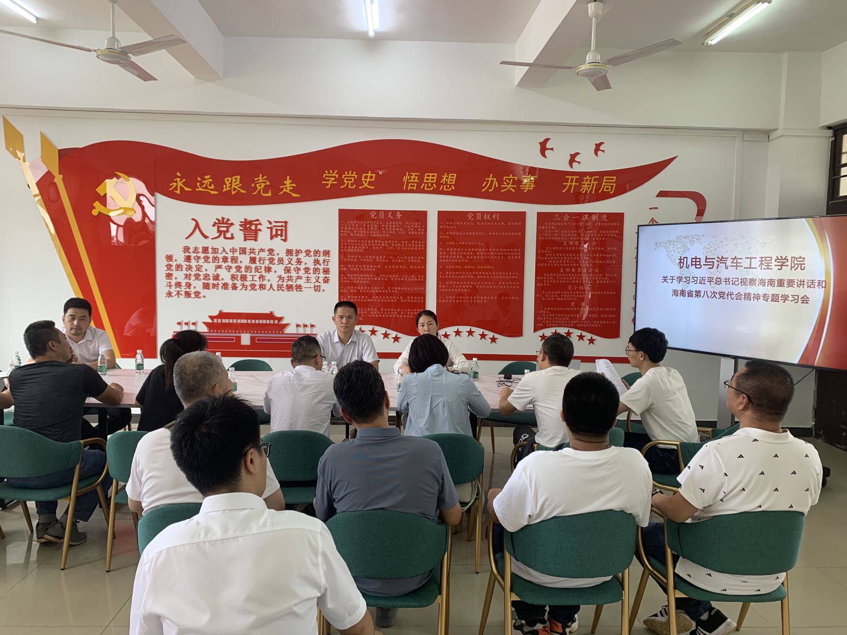 2022年5月19日,学院在2-409召开了关于学习习近平总书记视察海南重要讲话和海南省第八次党代会精神专题学习会,全体教职工参加。会议由学院党总支书记范高智主持。