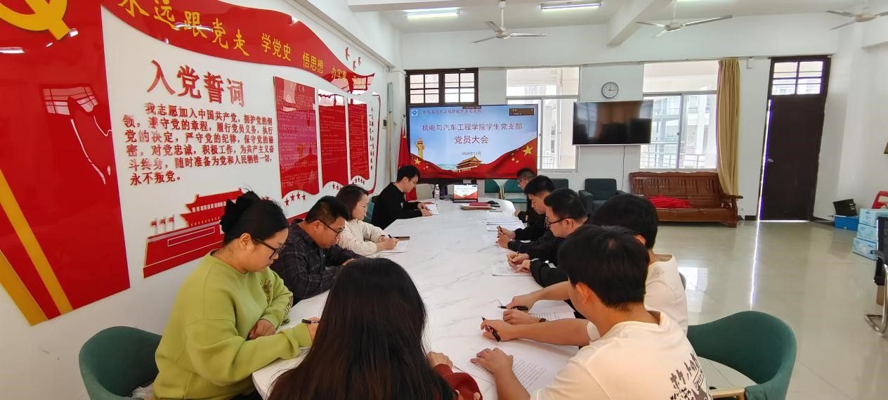 1220日,9428cn太阳集团古天乐学生党支部在2-409开展集中学习会,会议由党支部书记鄢兴祥主持,9428cn太阳集团古天乐学生党支部全体党员参加。