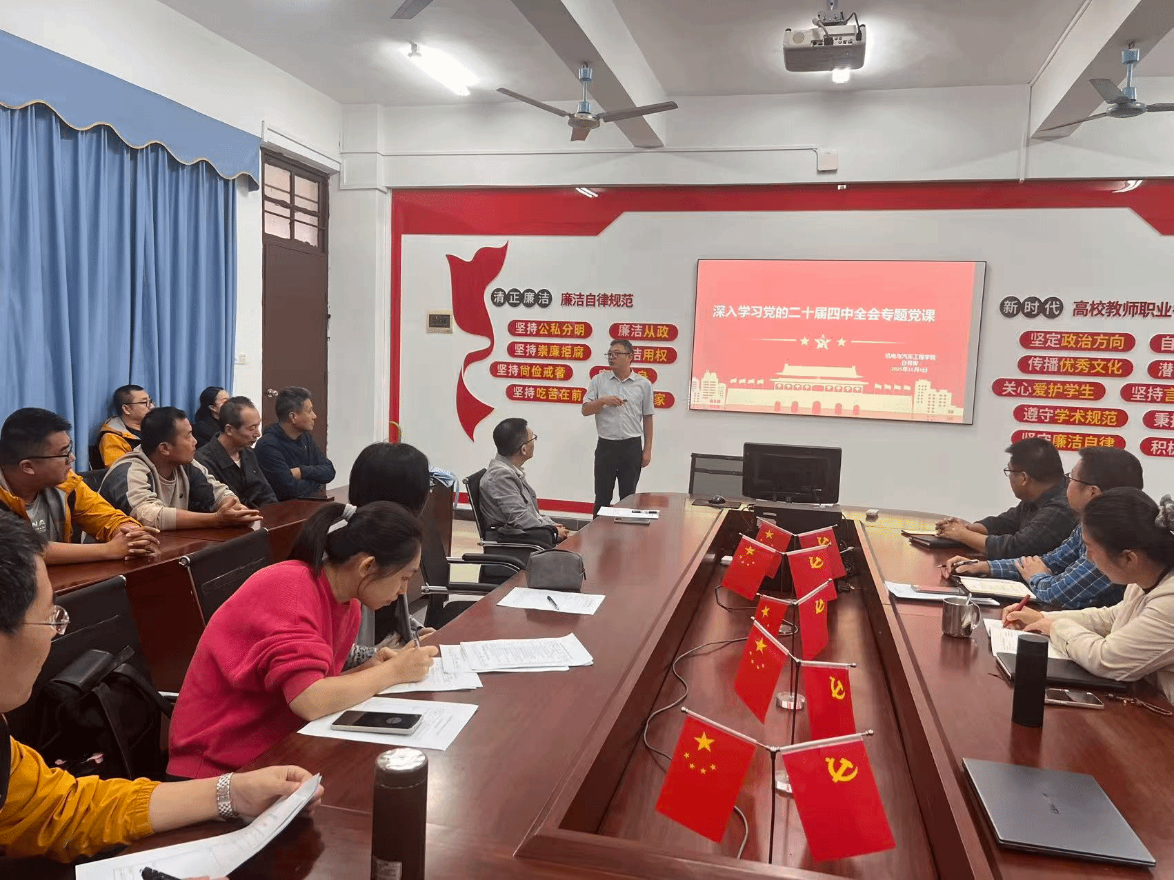 2025年11月4日,9428cn太阳集团古天乐党总支开展深入学习党的二十届四中全会专题党课,党课由学院副院长白有俊主持。