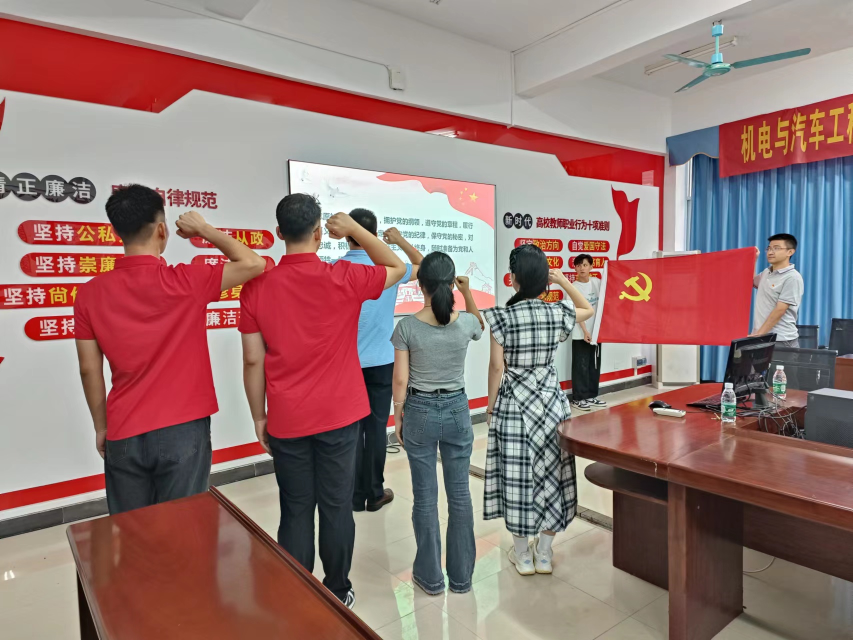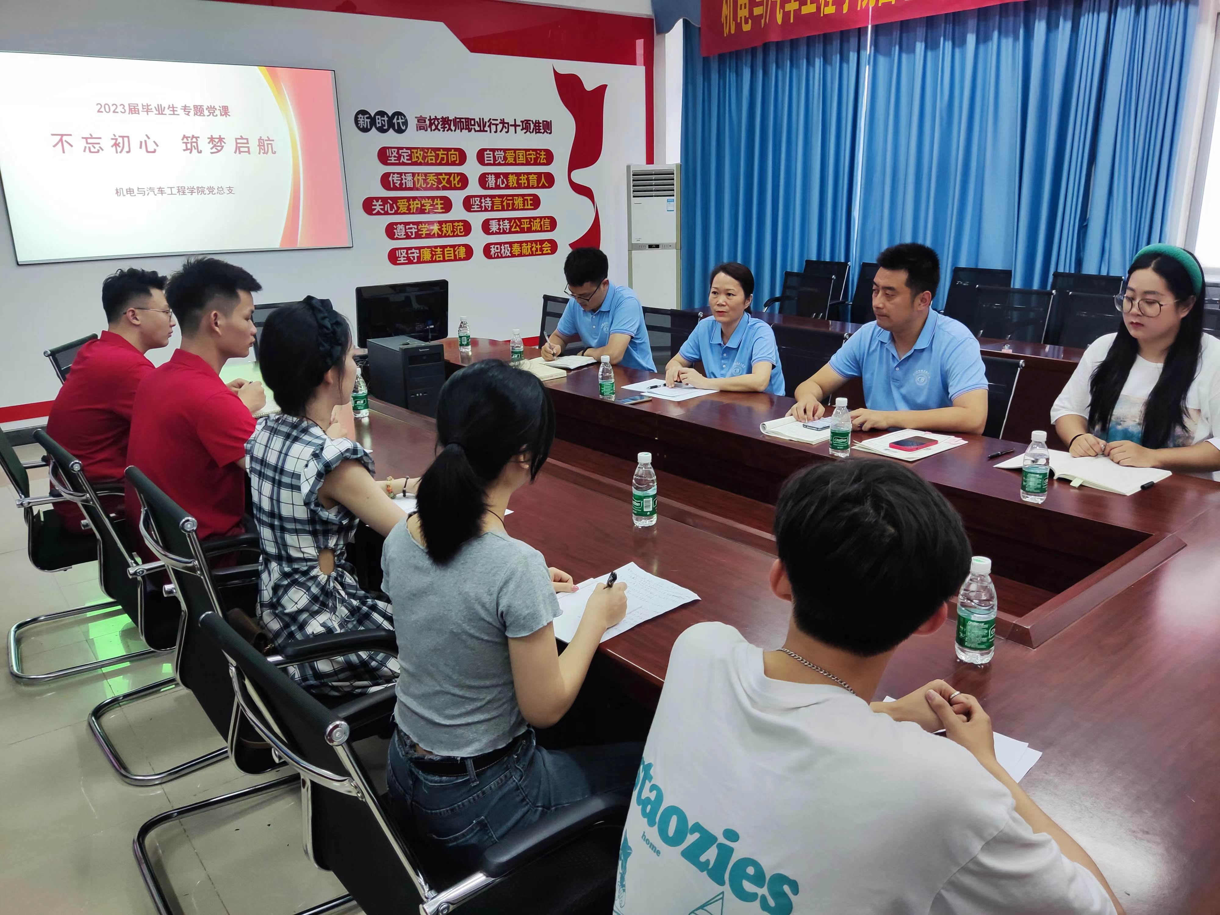 为加强毕业生党员教育,激励全体毕业生党员坚定信念, 6月16日下午,9428cn太阳集团古天乐学生党支部以线上线下相结合的方式在2-406会议室召开了主题为“不忘初心,筑梦启航”的毕业生专题党课暨预备党员转正大会。学院党总支书记黄邦姬为全体2023届毕业生党员上了“最后一课”,会议由学生党支部书记周恺主持。