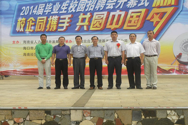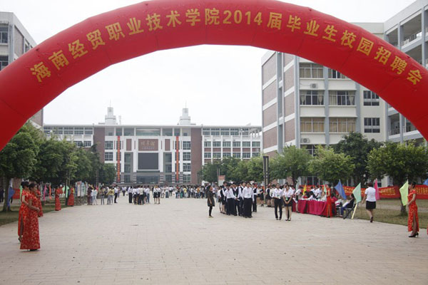 本系10月8日讯(团总支秘书长 钟超报道)11月7日,海南经贸职业技术学院在经贸广场举行了校园招聘会,由主办方:海南省人力资源开发局、海口市人力资源开发局、海南经贸职业技术学院,和承办方:海南众合人力资源开发有限公司、海南经贸职业技术学院应用外语系在我院召开以“校企同携手、共圆中国梦”为主题的校园招聘会。在热情助聘员的帮助下,114家企业代表来到了招聘会现场,他们的到来为我院2000多名毕业生提供了数千个工作岗位。
