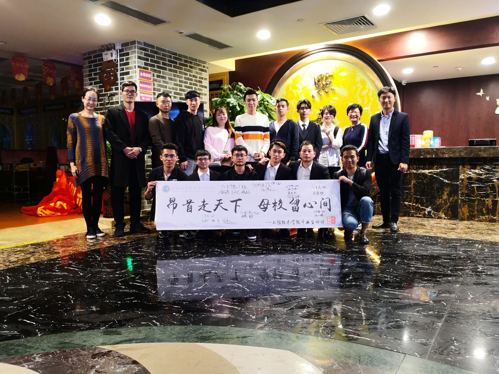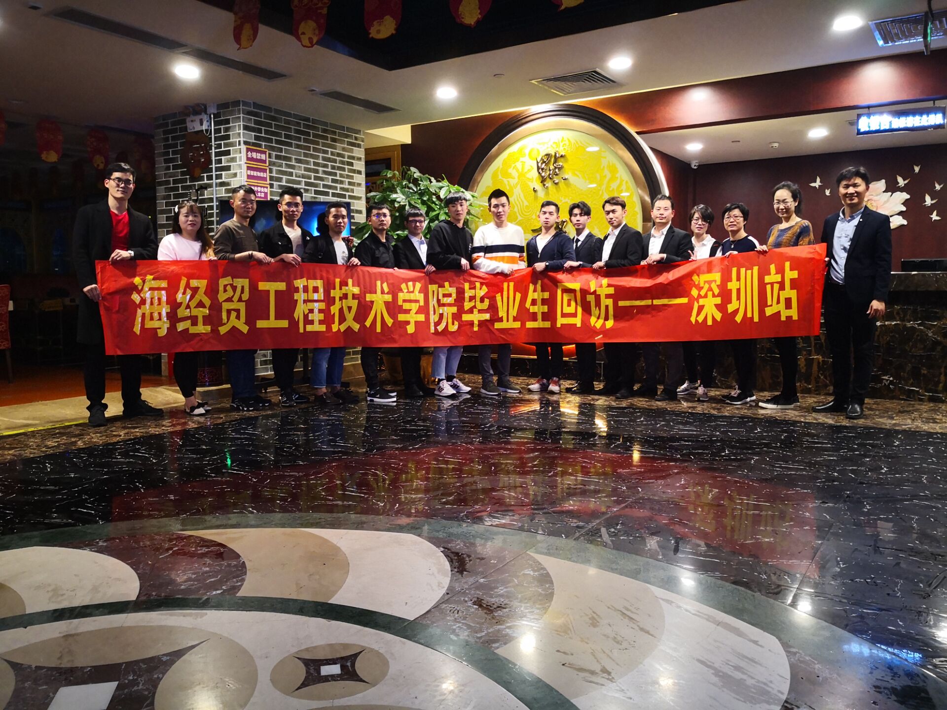 本次回访的地点选取了工程技术学院毕业生就业相对集中的地区——深圳,深圳作为国家创新型城市,高新技术产业较为密集,符合工程技术学院工科学生就业的首选区域。经过工程技术学院学工队伍的前期联系,参加本次回访的工程技术学院毕业生将近20名,专业包括电子商务、计算机网络技术、汽车检测与维修(中德诺浩班)、移动通信技术等,其中值得一提的是工程技术学院早期毕业生06级信息管理专业的朱健博同学也在公司年会结束之后第一时间赶来与老师和学弟学妹见面交流。