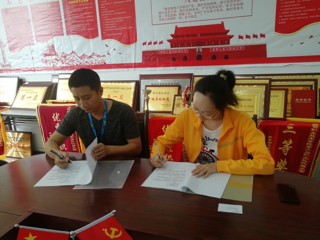 为落实新时代党的建设总要求,充分发挥基层党支部的主体作用力,加强不同单位之间基层党支部的学习交流与合作,经双方党支部共同协商,决定在自愿、平等基础上开展党建共建活动。我院学生党支部书记代晓明表示,签署“党建和创”合作书的意义重大,双方党支部联合开展主题党课活动、各类主题实践活动,可有效整合双方在人力和财力、信息、阵地、开展各类活动经验、文化知识等方面的资源优势,以合作共赢为目的,努力将两方党支部打造成新时代背景下的样板党支部。