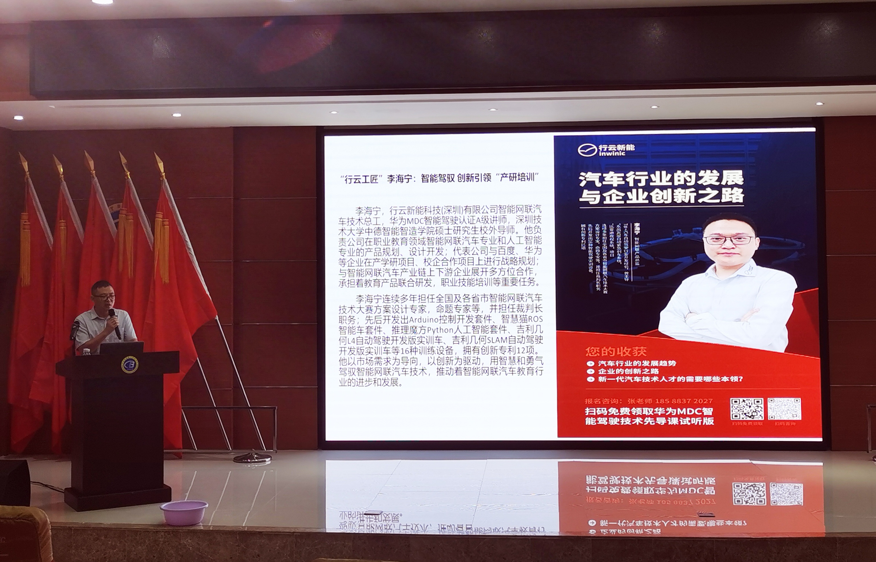 本次讲座内容重点围绕中国近几年的新能源汽车产品的发展变化,结合国际国内产业竞争格局,分析新技术所带来的哪些变革,对于学生们作为新一代的技术人才,面临产业技术的快速革新,如何能够做到快速适应社会的发展,如何参与到产业革命浪潮中,如何运用智能驾驶技术的前沿技术,掌握华为在智能驾驶领域的最新的技术成果,做到能够为企业转型、行业发展做出应有贡献。