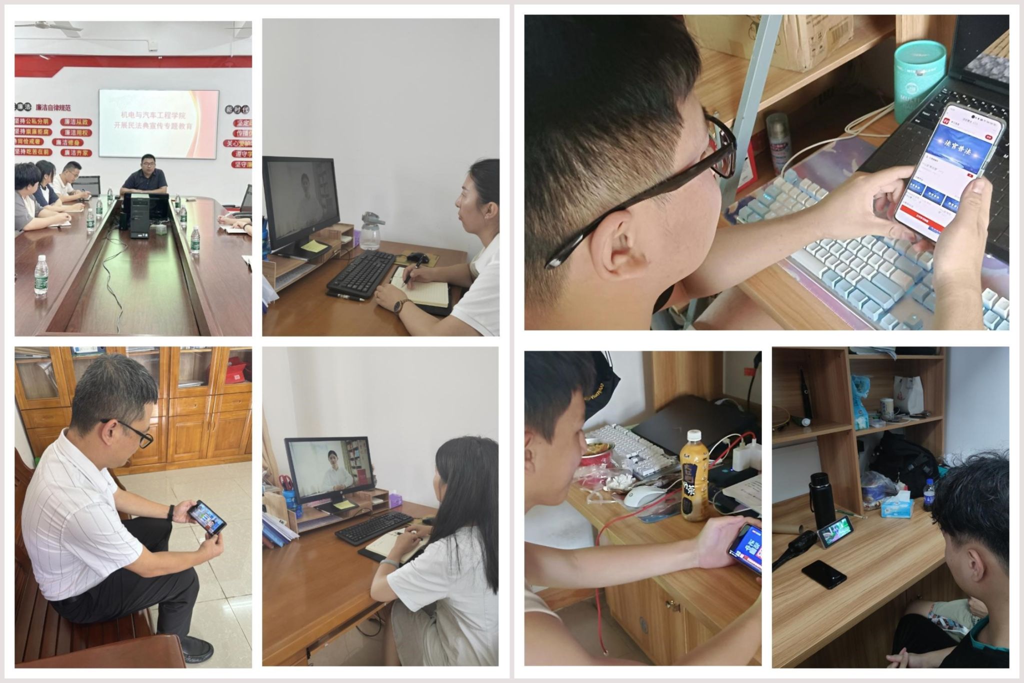 “线上+线下”学习,丰富宣传形式。一方面,我院在学习强国、人民网、央视频等学习平台查找民法典相关文字视频资料,将学习内容转发至机电工匠公众号、班级群等,通过学生自主学习、分小组学习等方式扩大民法典宣传范围。经过动员组织,线上学习人次达1000余人,真正让学生走近、了解、运用民法典。另一方面,结合实际,线下宣讲。我院教师、学生党支部、团总支积极组织学生党员、入党积极分子、团学干部进行民法典相关内容线下学习,通过贴近生活的案例讲解,让学生真正切切感受到民法典就在身边,提升自我保护意识。