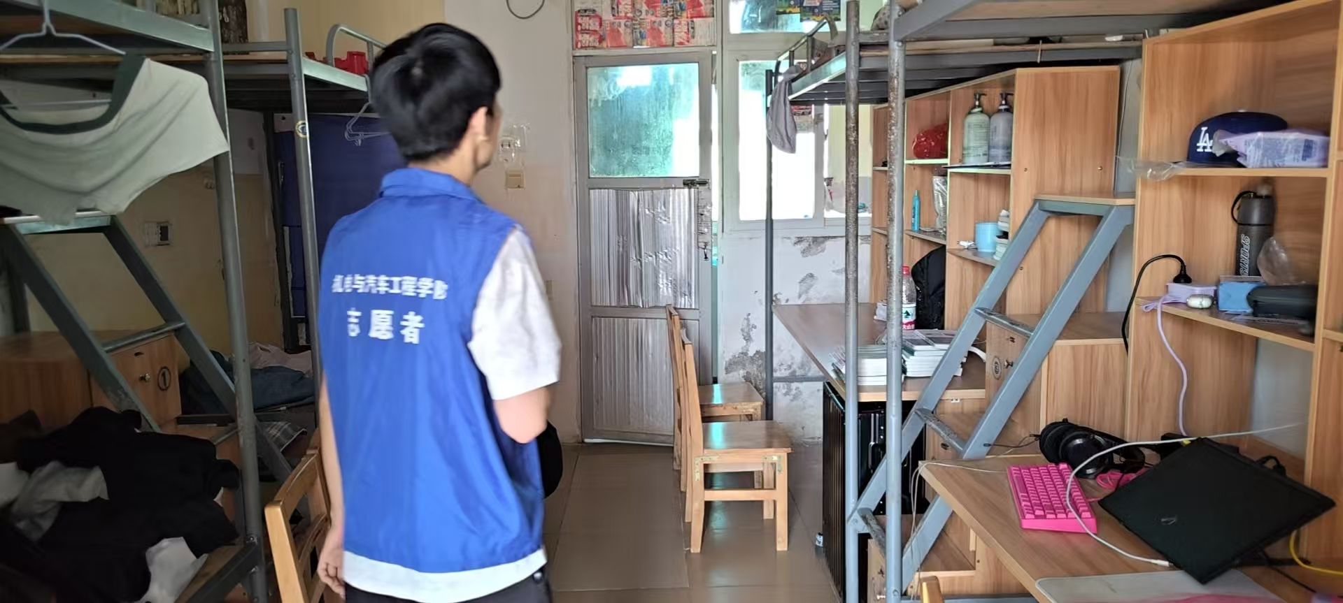 活动中,由全体辅导员、学生干部及志愿者组建的考评小组,深入学生宿舍一线开展全方位检查。考评团队紧扣宿舍卫生状况、安全隐患排查、文明氛围营造三大核心环节,通过实地走访查看、现场量化打分的方式严格考评,将 “以评促改、以评促优” 的活动初衷转化为具体行动,切实推动宿舍文明建设走深走实。