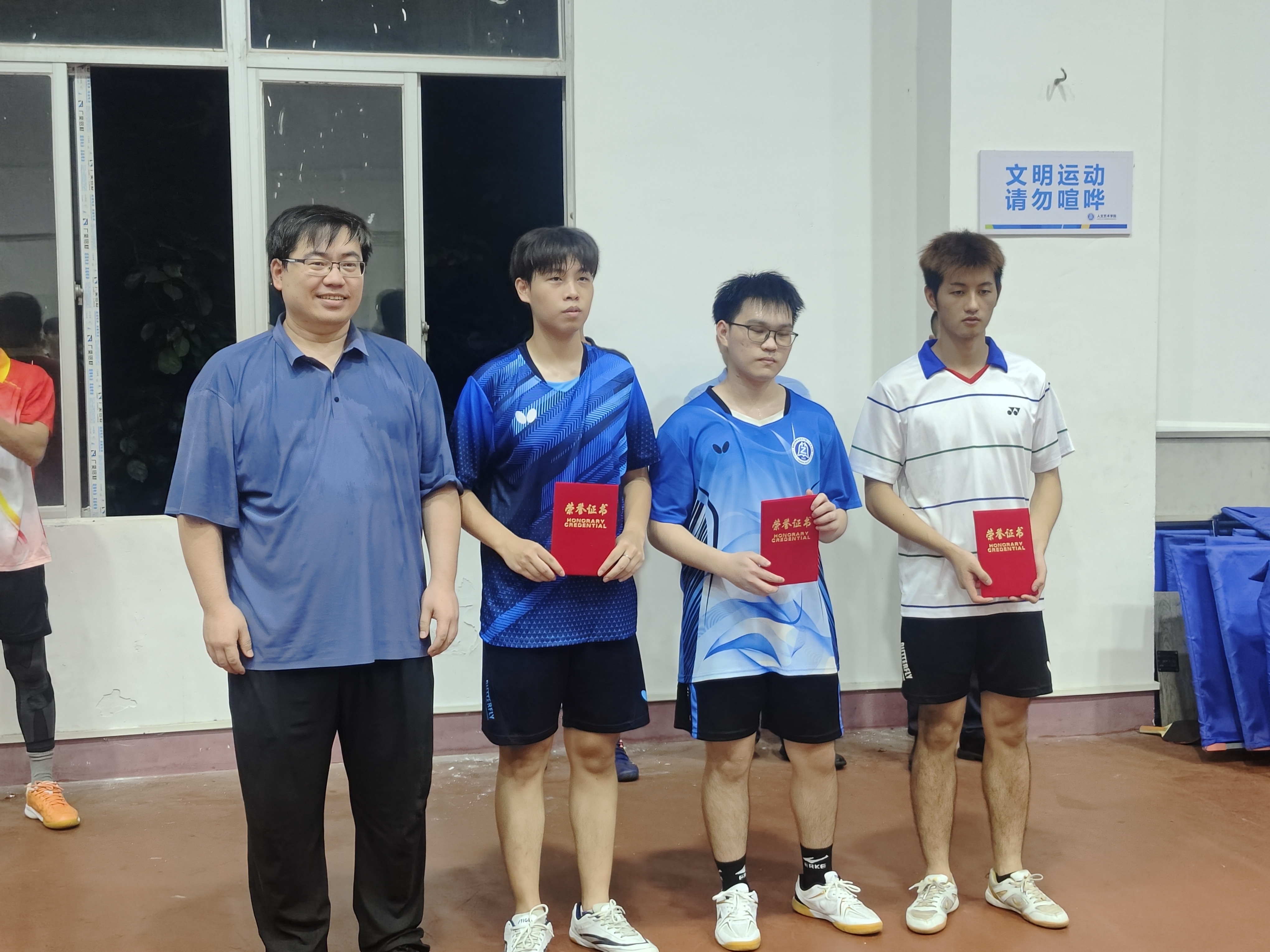 5月22日,我院乒乓球代表队披荆斩棘,夺得海南经贸职业技术学院大学生乒乓球比赛团体第四名,韩符海同学获得个人第二名!