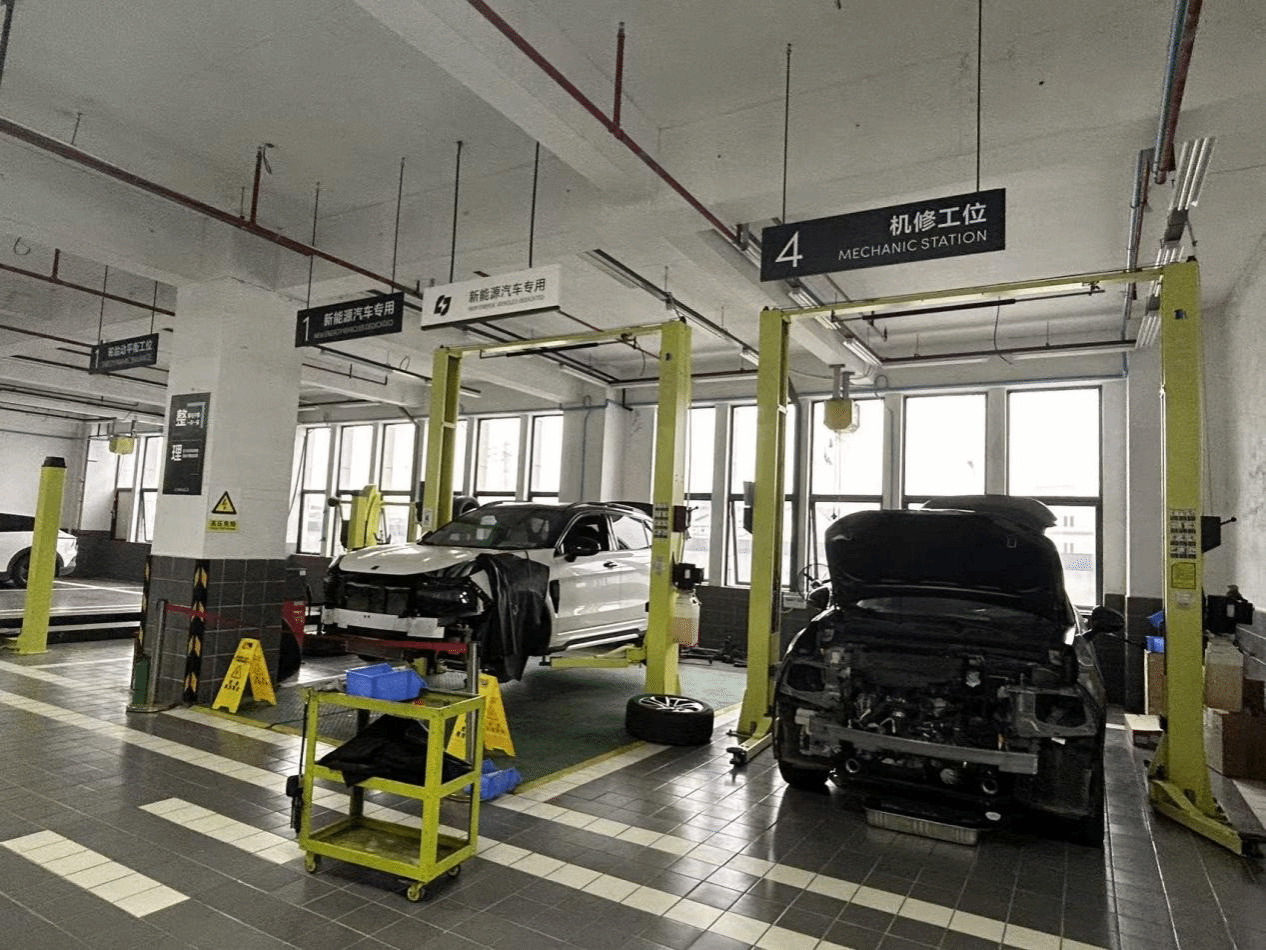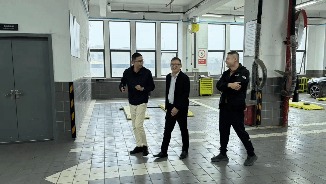在黄林总经理的陪同下,白有俊一行参观了集团标准化汽车维修车间。通过现场观摩新能源车辆故障诊断、智能检测设备操作等环节,教师们直观了解了行业对复合型技能人才的需求。黄林指出:“现代汽车维修已从‘经验驱动’转向‘数据驱动’,校企合作需强化学生跨学科能力培养。”