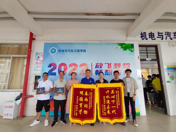 “饮其流者怀其源,学其成时念吾师。”今日,我院2022届机电一体化技术专业(社招班)毕业生黄武超和陈敏将写有“ 明德育人,春雨润物”和“汗水流未来,关心下一代”的锦旗送到学院老师们手上,以表达自己对全体老师的感恩之情。