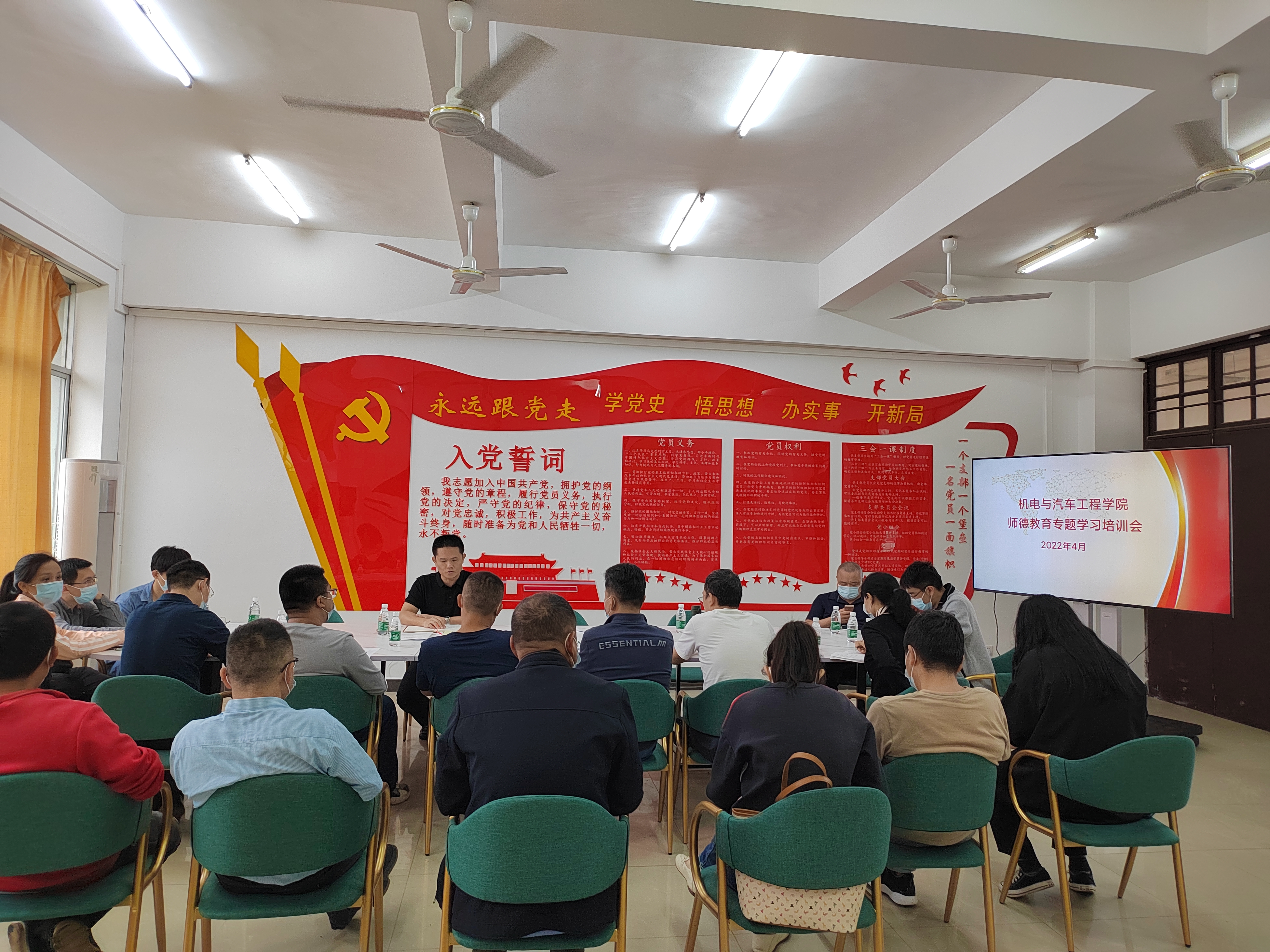 2022年4月19日下午,学院在2-409会议室组织召开师德教育专题学习培训会,全体教职工参会。学院党总支书记范高智主持会议。