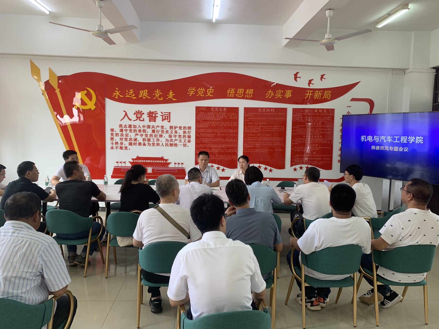 2022年5月19日,根据《关于引发〈海南经贸职业技术学院师德师风专项整治行动方案〉的通知》(琼贸职院字〔2022〕51号)的有关文件要求,9428cn太阳集团古天乐在2-409召开了师德师风专题工作会,全体教职工参加,会议由学院党总支书记范高智主持。