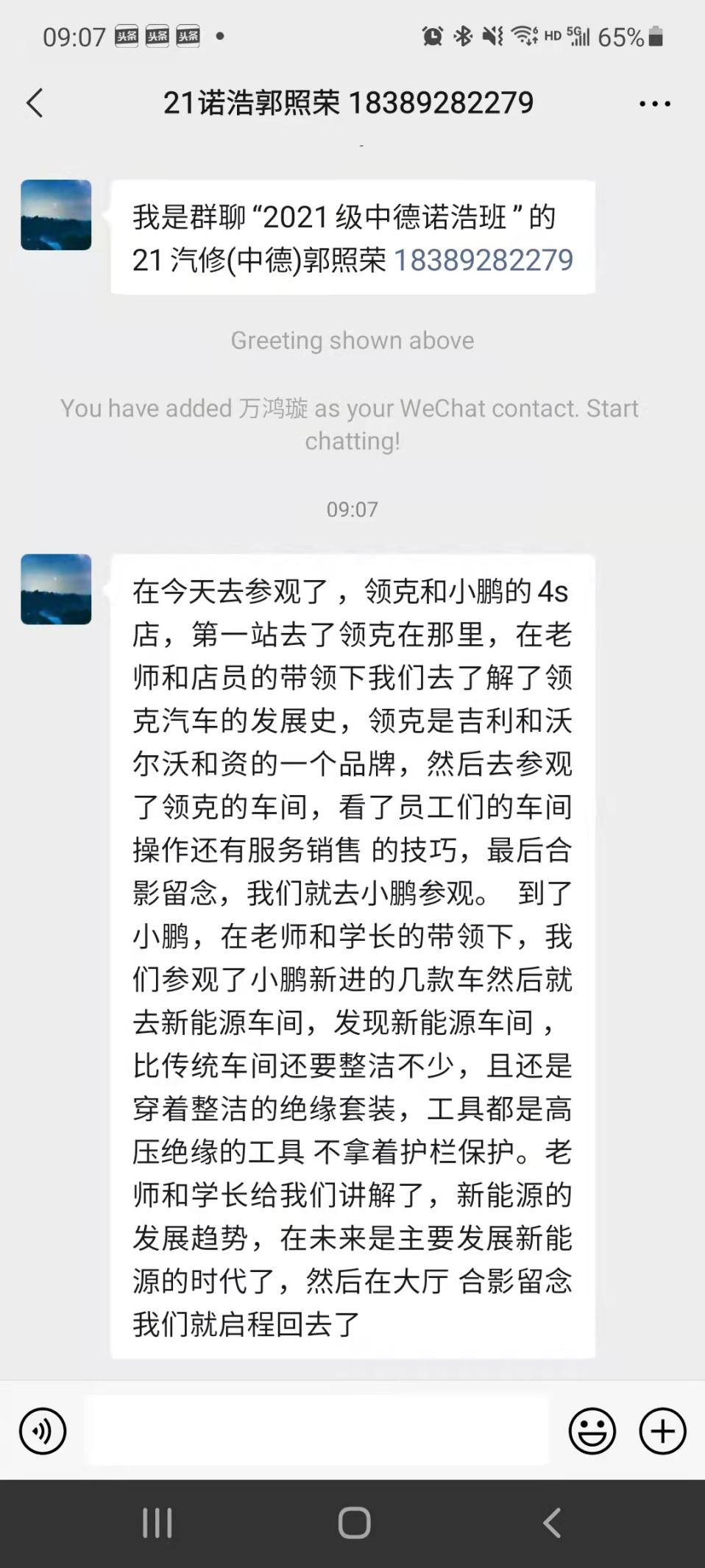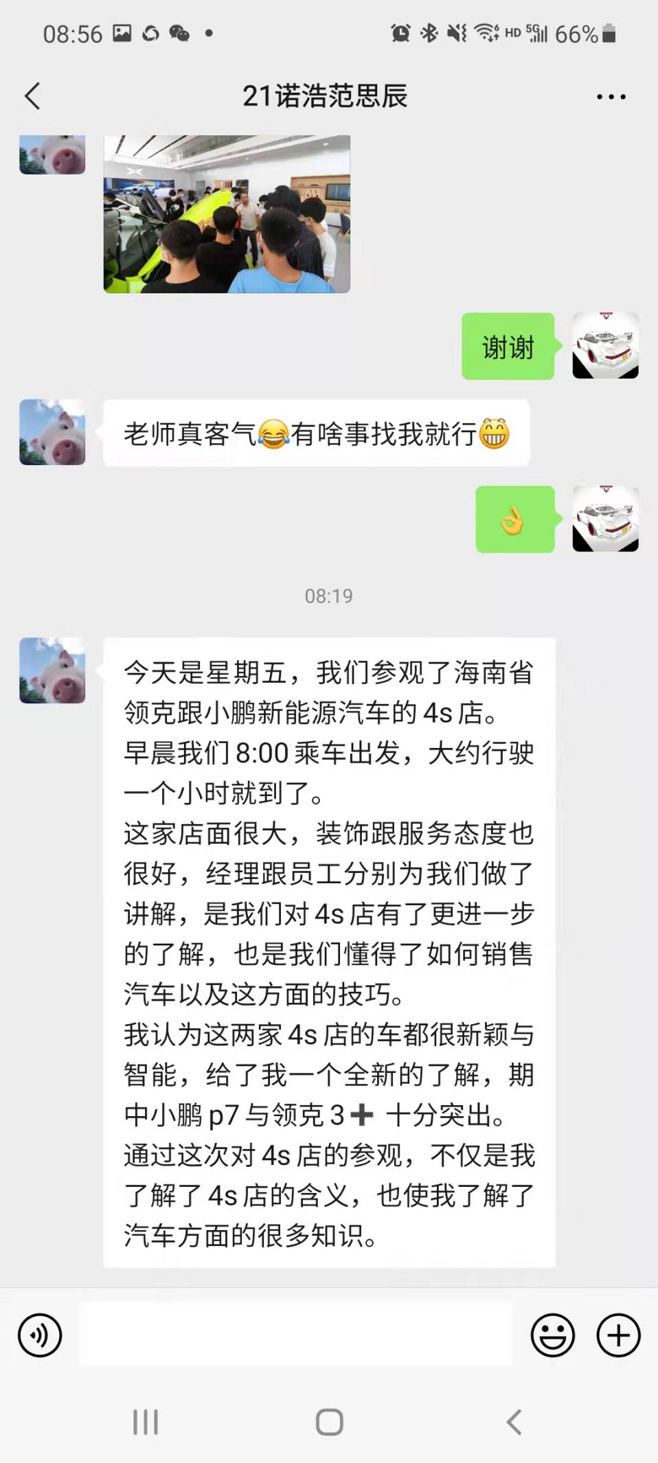 同学们在小鹏汽车展厅合影