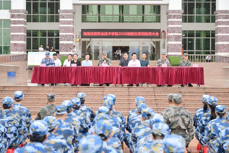 2020年10月17日,海南经贸职业技术学院2020级新生军训动员大会在经贸广场举行。学校党委副书记崔昌华,承训部队领导刘元春、林建西、刘阳出席。学生工作部、安全保卫处、各二级学院党总支负责人、辅导员以及2020级新生辅导员参加活动。