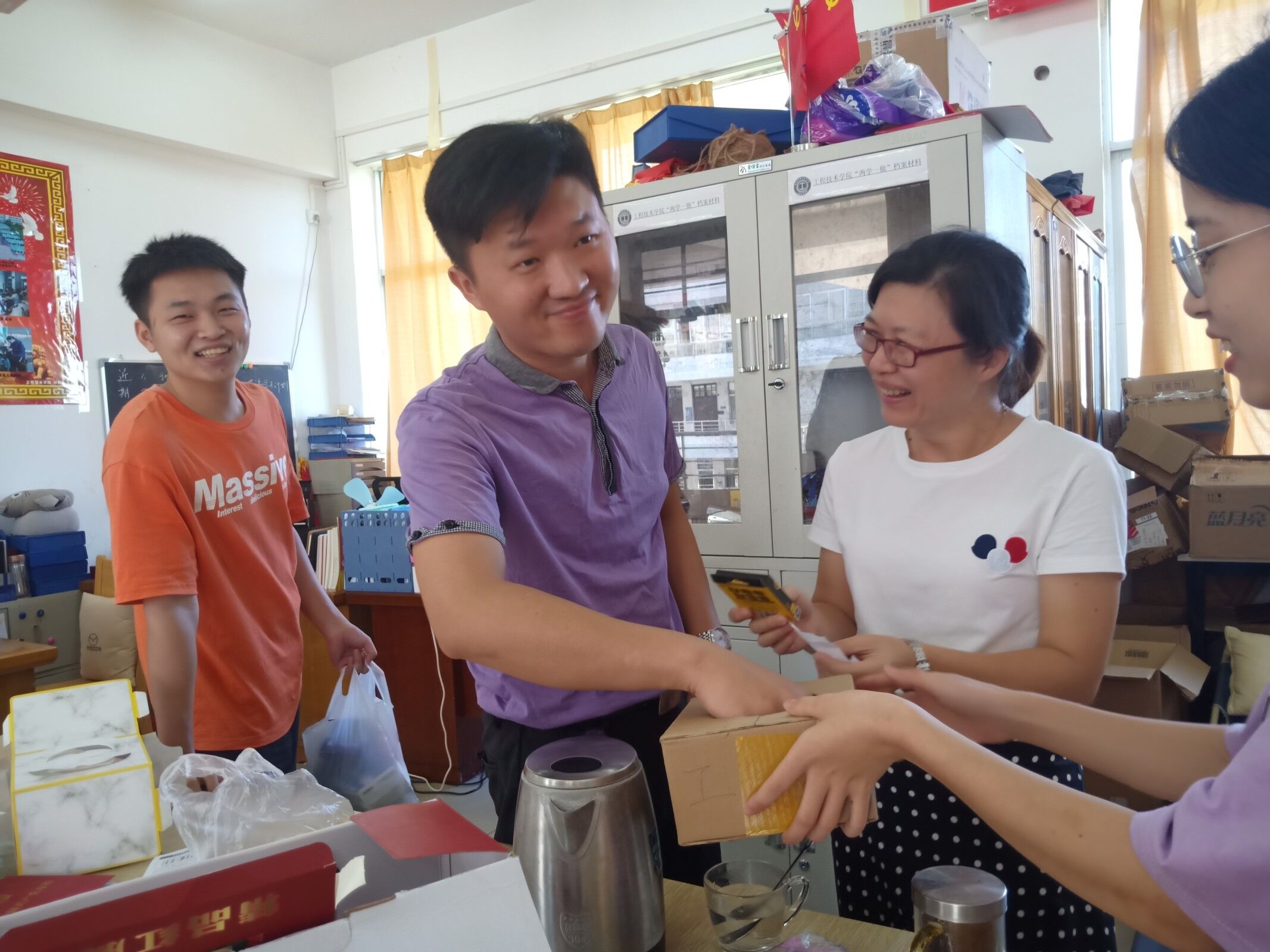 工程团学干部们,将一份祝福和一份小礼品送给辛勤工作的老师们,因为老师们不仅传授我们知识,更是教会我们做人的道理。也通过此次的活动,使老师们感受到了浓浓的节日气氛,也让同学们受到了感恩的教育。