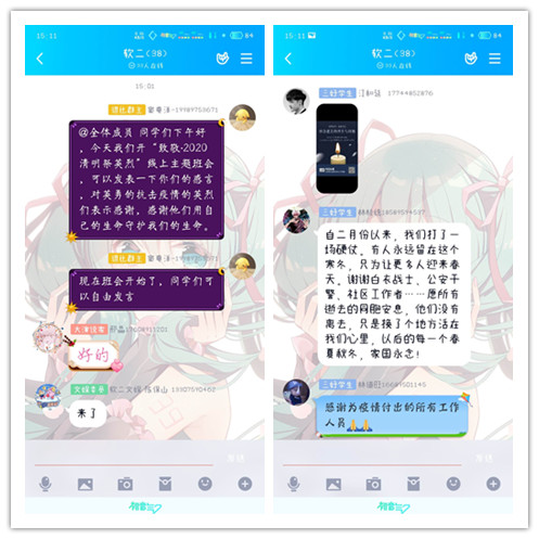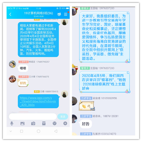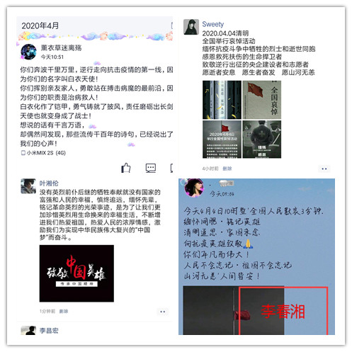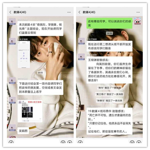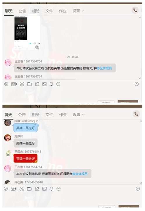 二、学生通过微信、QQ等线上平台致敬为抗击新冠肺炎疫情斗争牺牲烈士