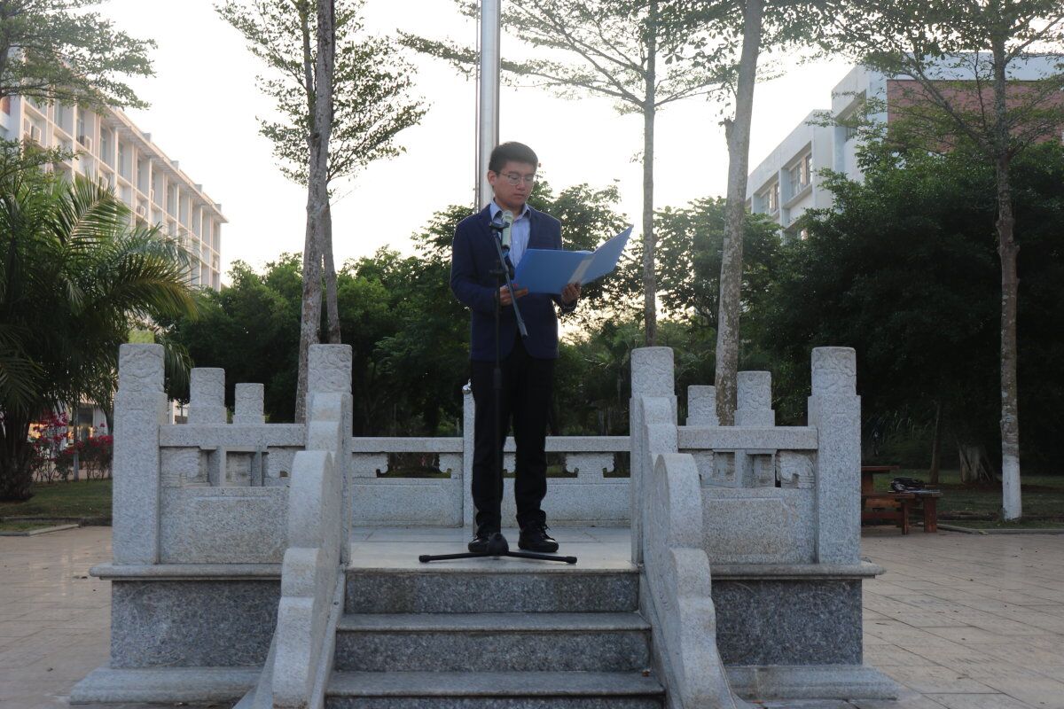 此次升旗仪式围绕“国家宪法日”主题展开,大会第一项:升国旗、奏国歌、行注目礼。大会第二项:由李响老师宣读宪法日主题升旗仪式相关内容、随后张继友书记上台发言;张继友书记在国旗下的讲话表达出来对我校师生的共同期待,望我校师生能增强宪法意识,弘扬宪法精神,维护宪法权威。
