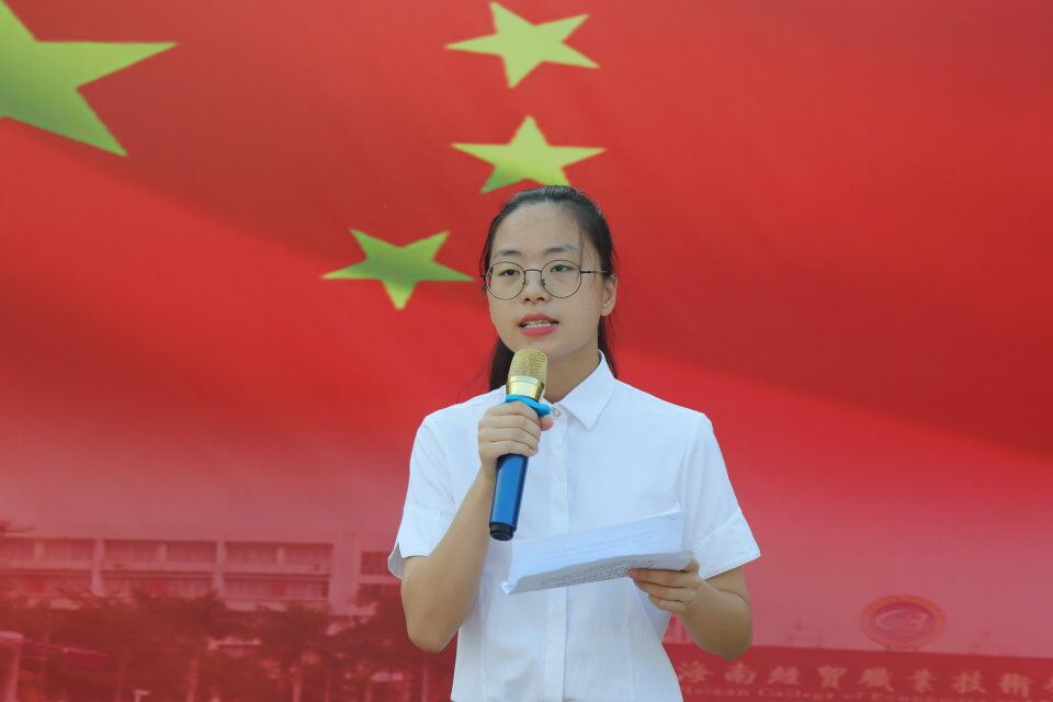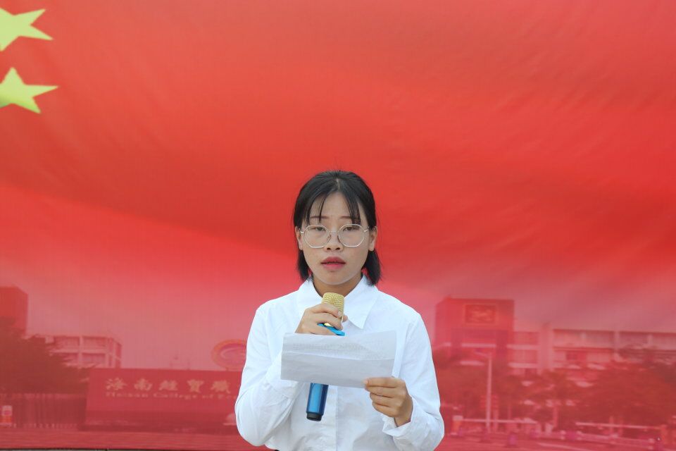争做海南脊梁”主题开展活动,由我院团学青副书记李家欣主持本次升旗仪式,大会第一项:国旗护卫队出旗;大会第二项:升国旗、奏国歌、行注目礼;大会第三项:国旗下讲话,本次演讲的同学是19级网络一班李秋玉,演讲主题是“培育和实践社会主义核心价值观”,她与大家分享了作为大学生在践行社会主义核心价值观中要着重落实于行动上、应加强自身业务学习、树立服务理念努力实现自我价值、勇于承担社会责任等;陈亚芳老师国旗下的讲话中提出了“加强学生的自我管理”、“牢记校训,学以致用”,倡导我院学生在大学生活中对自己的未来进行科学规划,并祝愿每位同学能够找到自己的人生答案。