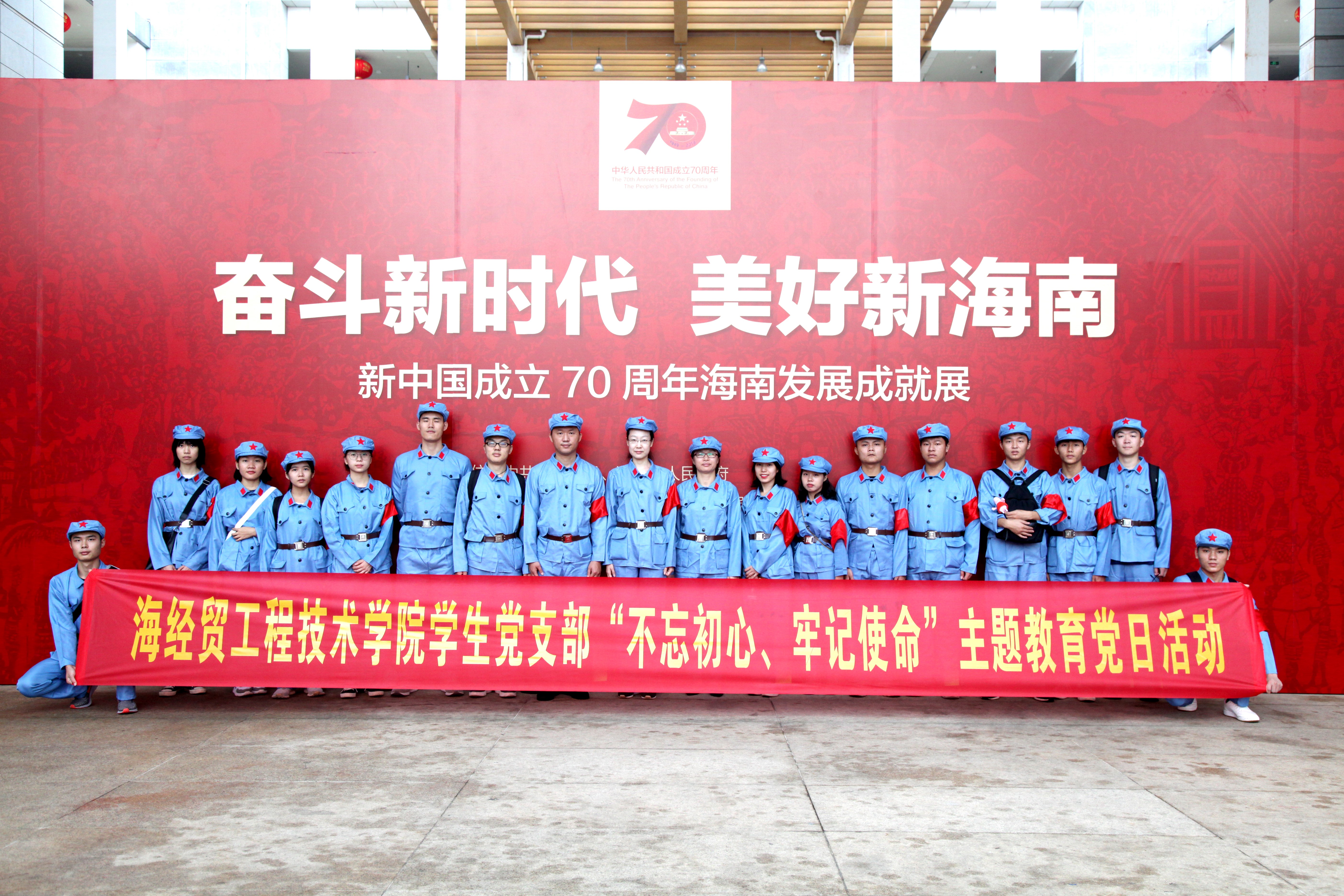 2019年11月2号(院青年媒体中心报道)讯,为庆祝新中国成立70周年,深入了解海南发展的光辉历程和辉煌成就,11月1日上午,工程技术学院学生党支部全体党员、班主任代表和学生代表共同前往省博物馆展厅参观“奋斗新时代、美好新海南”庆祝中华人民共和国成立七十周年海南发展成就展,前往骑楼老街参观“纪念南洋华侨机工回国抗战80周年图片、雕塑展”。