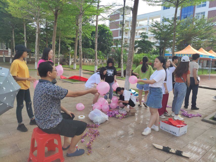 2019年9月13号(院青年媒体中心)讯,2019级新生即将要到来,我院于3栋玻璃房作为主要迎新地点,为了让2019级新生感受到温暖,热情,快乐的氛围,老师们和团学青的全体成员早上7点到达活动现场进行布置。