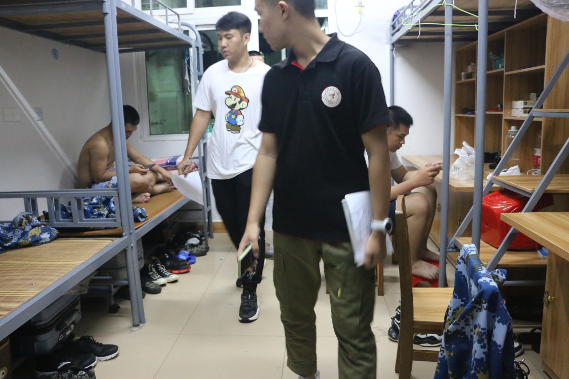 团学青各部门分别到我院于2栋女生宿舍楼、5栋男生宿舍楼的各个寝室逐一敲门检查,检查结果显示:一共检查的126间宿舍中,87间表现优秀,29间表现良好,10间表现较差。数据表明,我院19级学子在军训期间的生活习惯及作息时间较为规律,床上被褥叠放整齐、桌面物品摆放规整、宿舍卫生干净整洁;个别宿舍作息时间与宿舍环境稍显混乱,团学青干部在检查时对其提出批评后,耐心指导同学们整理卫生并向大家宣传宿舍安全知识,同学们虚心接受批评并改正。