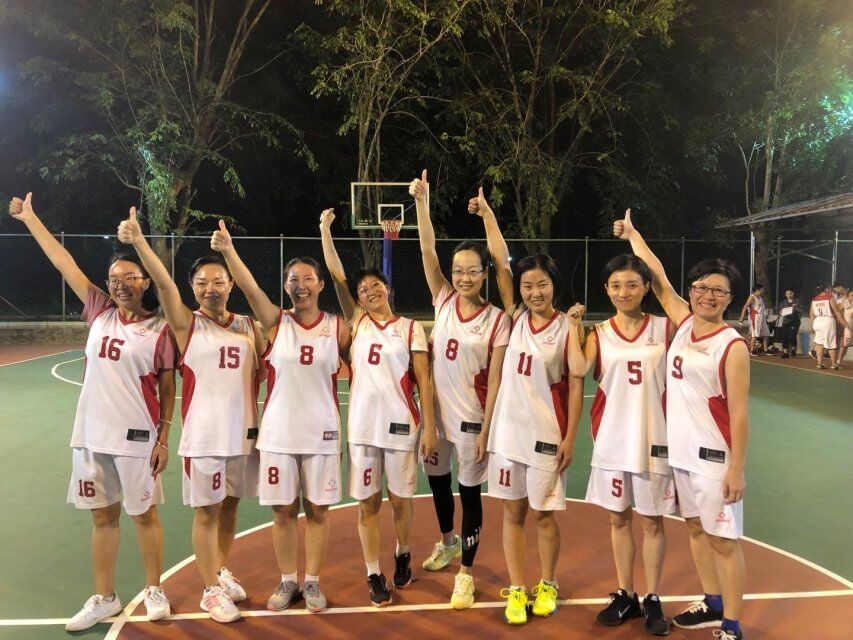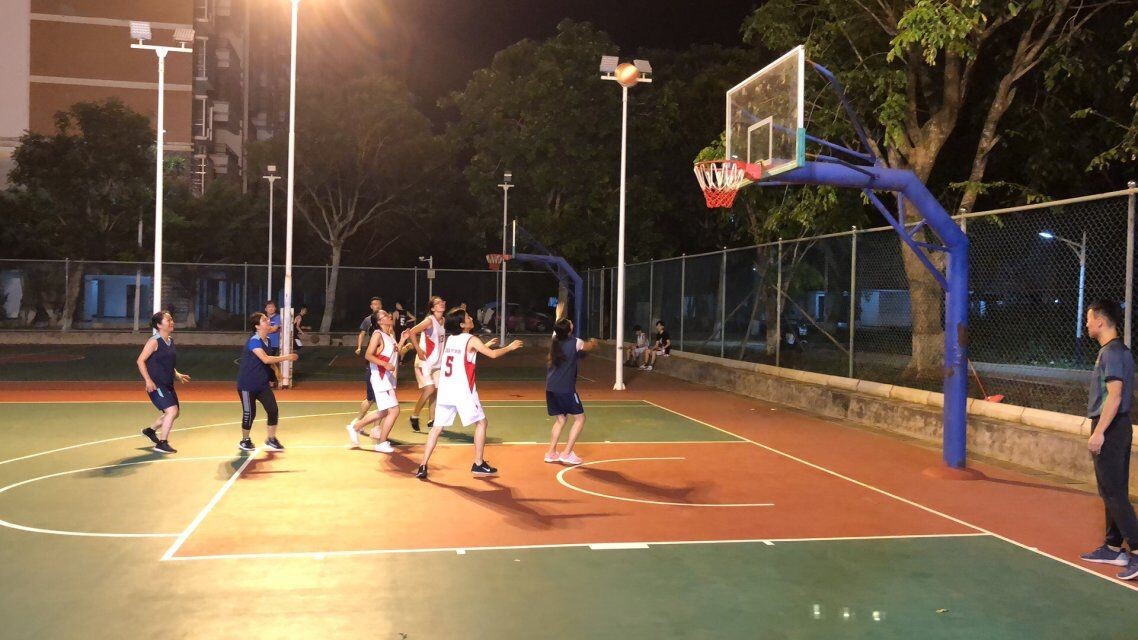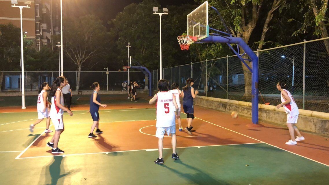 2019年9月27号(院青年媒体中心)讯,9月25日晚19:30在篮球场我院女教职工代表队迎来了学院第四场篮球赛。本场比赛为我院女队VS机关女队。赛前双方热身、试球,拉拉队也迅速地集结到场。