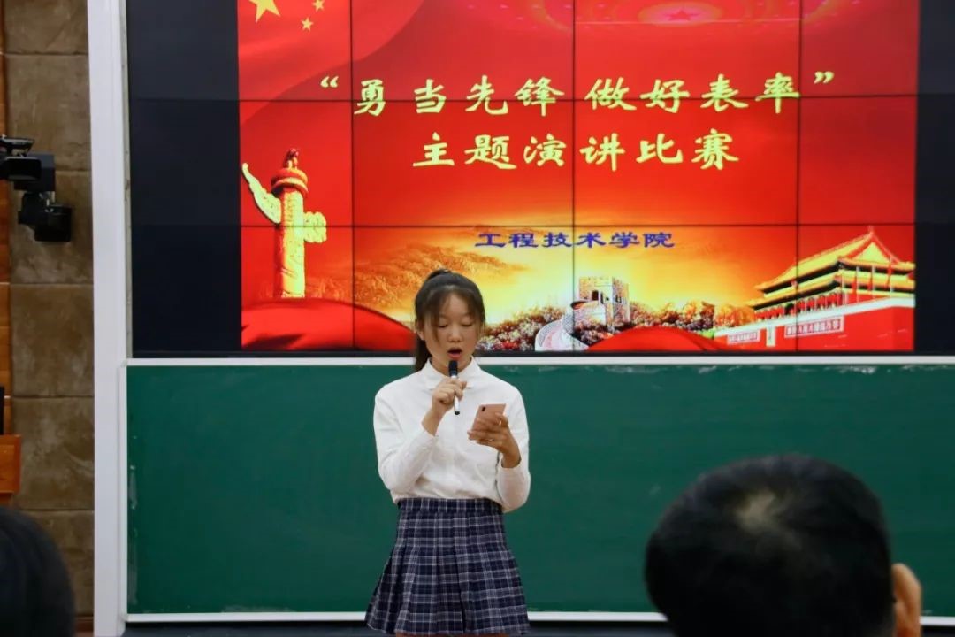 2018年10月11日(青媒媒体中心报道)讯,我院在2栋215教室举办了"勇当先锋,做好表率”主题演讲比赛。参加人有党总支书记陈继敏、党总支副书记陈亚芳、学工办主任梁其钰、团总支书记唐图、大一辅导员代晓明老师、郭蓉佳老师、各学院的主席团、团学青全体成员及18级各班干部,主持人刘念。