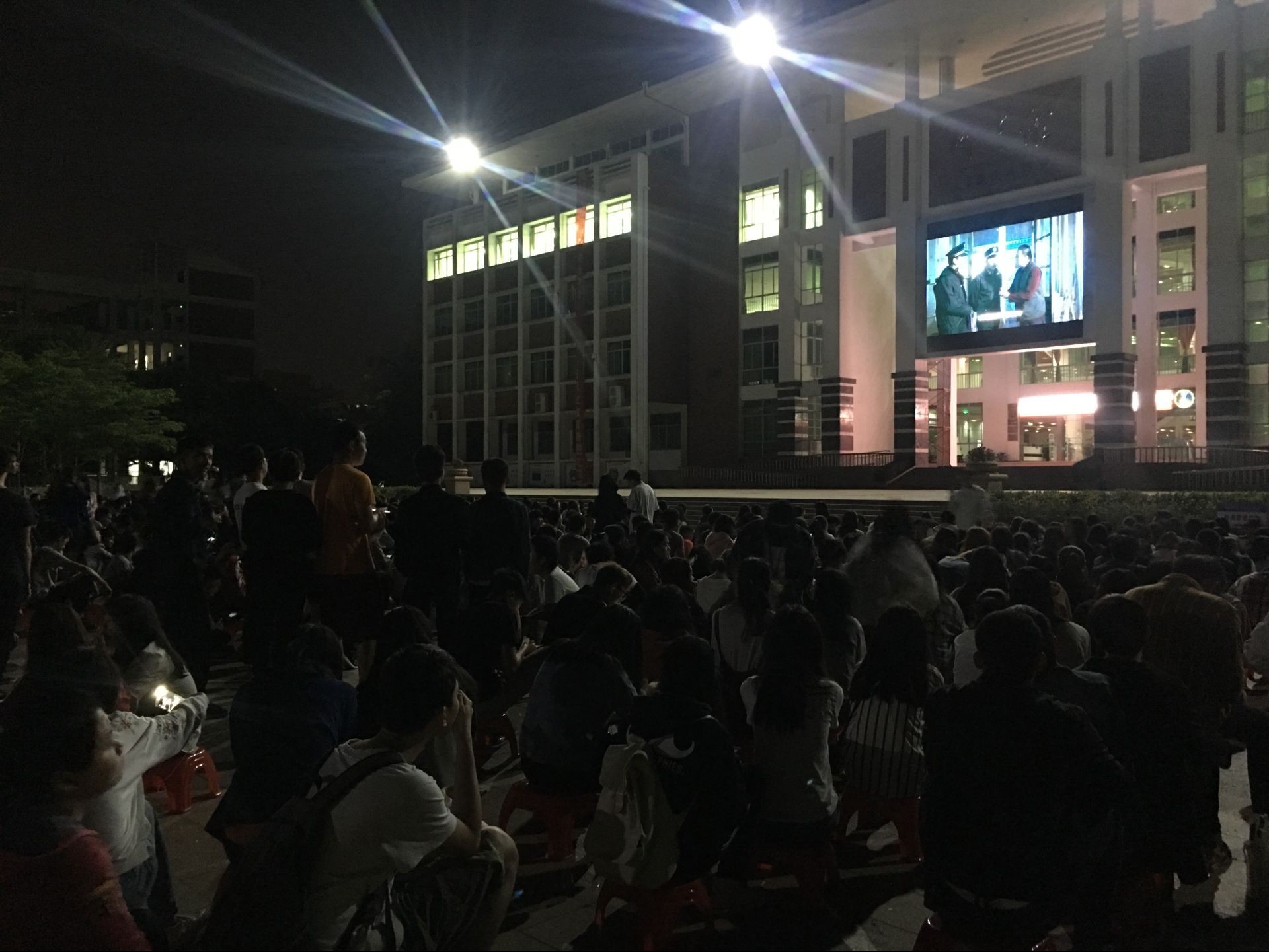 3月21日讯(青年媒体中心唐石昌报道)2018年3月20日晚,由海经贸组织的全体大一级学生在经贸广场观看电影《回归》,各二级学院团学负责人负责引领学生到达现场和维持各学院的人员次序。