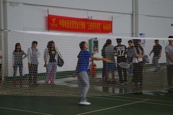比赛开始了,每位参赛选手们都活力四射,尽显风采,有的选手即使落后了,也每球必争,决不放弃,奋力拼搏的精神充满了整个赛场。他们虽然不是真正的运动员,他们却依然将高远球、扣球、吊球等各路球技展现的趣味横生,让赛场下的观众们的喝彩声、加油声、欢呼声响成一片。