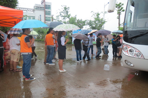 上午8时左右,海口的天气像娃娃的脸,说变就变,雨时大时小的下个不停,我校大门口淅淅沥沥的雨水却显然没有影响学长学姐们迎接学弟学妹的热情。接站的车辆一驶进校区,他们就立刻行动起来,不顾雨大水深,接过新生手中沉重的行李,引领他们到二栋教学楼楼下系部新生接待处,并热情的给家长们搬凳子提供休息、倒水,让其在避雨途中稍做休息,安排好父母然后再带学弟学妹们去办各种手续。办理程序完后,便送他们回学生宿舍楼。