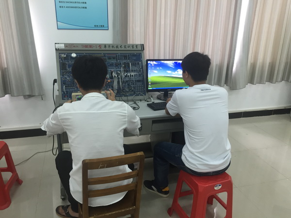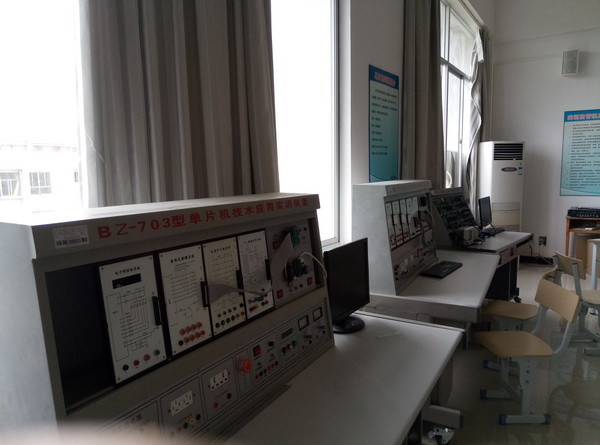 ◇实训室简介 1.门牌号:3-504 2.责任教师:吴老师 3.主要设备: (1)单片机技术实训装置 THMEMU-1 1套 (2)单片机技术实训装置 BZ-703 2套 4.课程及主要实训项目:《单片机技术》 项目一 数据传送 项目二 数据排序 项目三 定时器应用 项目四 8255 I/O扩展 项目五 DAC0832并行D/A转换 项目六 ADC0809并行A/D转换